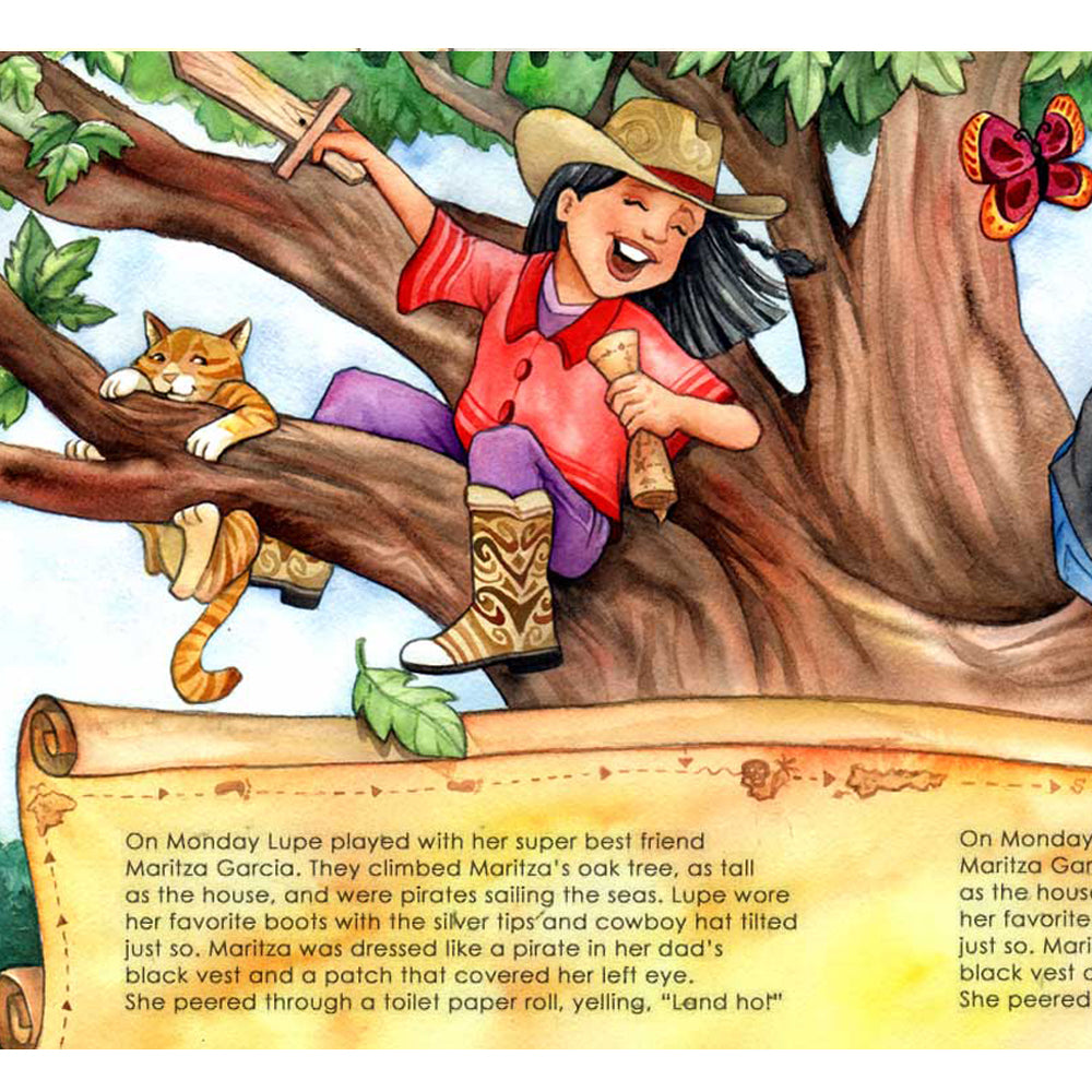 Each day of the week best friends Lupe and Mariza make up games and stories as they play, sometimes to the chagrin of their irritable neighbor. One day the friends have a tiff; could this be the end of their friendship? Even Mrs. Ramirez is relieved when the girls make up in their distinctive,imaginative way. Jaunty illustrations further enliven this story told in two languages.